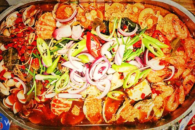 蔬菜也是可以不用自己买的,海鲜加工店可以现点。