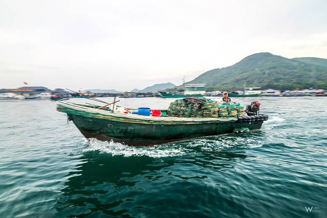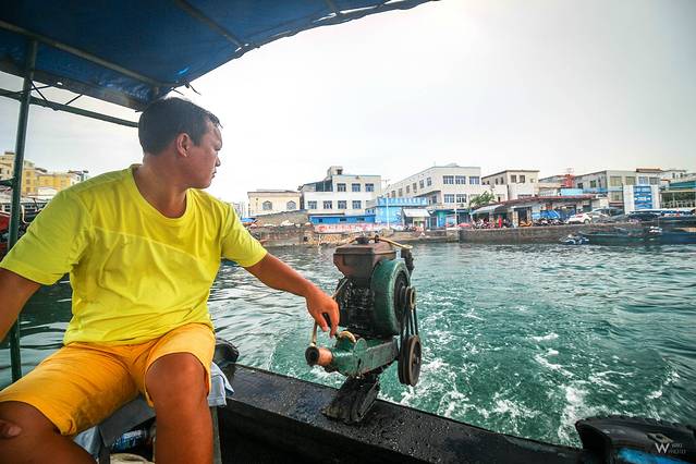 前往椰子岛及水口庙是只能坐船的,100元包船往返,不限人数(当然是在安全人数范围内)。我们在村口的便利店叫了一位渔民小哥,谈好了价钱就坐他的渔船出海了。