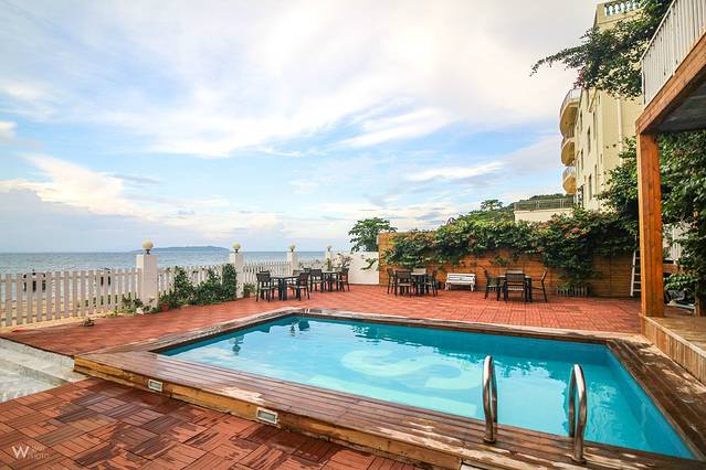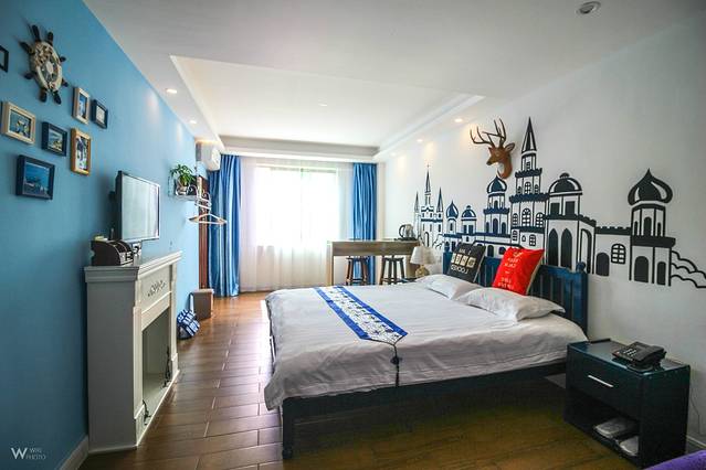 一些民宿和青旅建得别出心裁,有海景房,还有自己的小游泳池。不少自由行的游客都选择在后海村过夜,转天直接坐船上蜈支洲岛,傍晚再返回来。