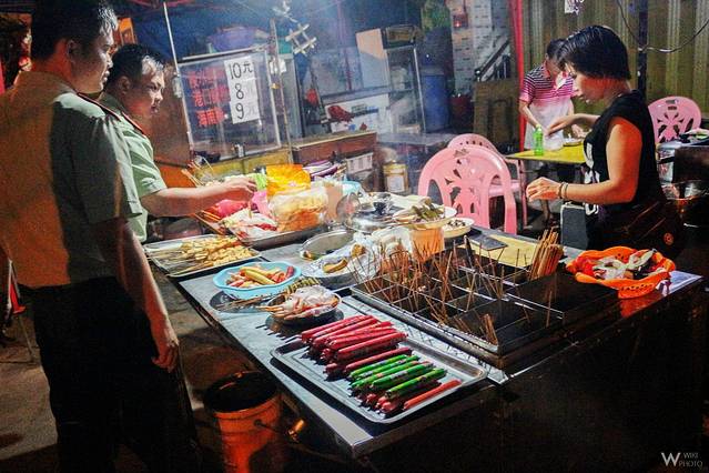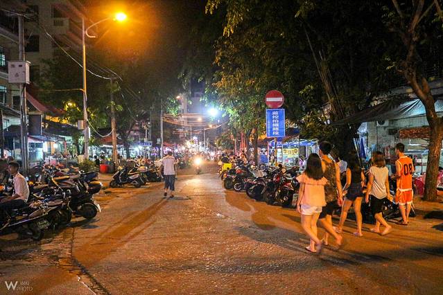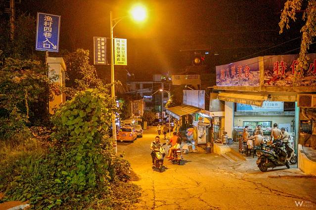 我本想趁着天还没完全黑坐公交去鹿回头山顶公园,却因为久等公交车不来只好步行上山,在半山腰竟然发现了藏匿在山窝里的疍家渔村入口。毅然临时决定改变行程,顺着坡走下去,结果碰上了疍家渔村热闹的美食夜市。我之前完全不知道三亚市区竟还有这等风貌纯朴的渔民村落。