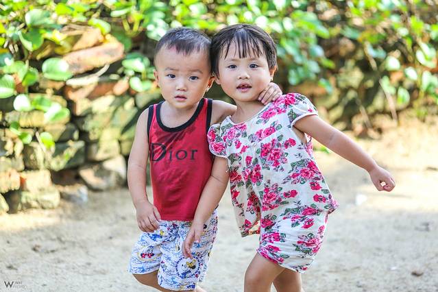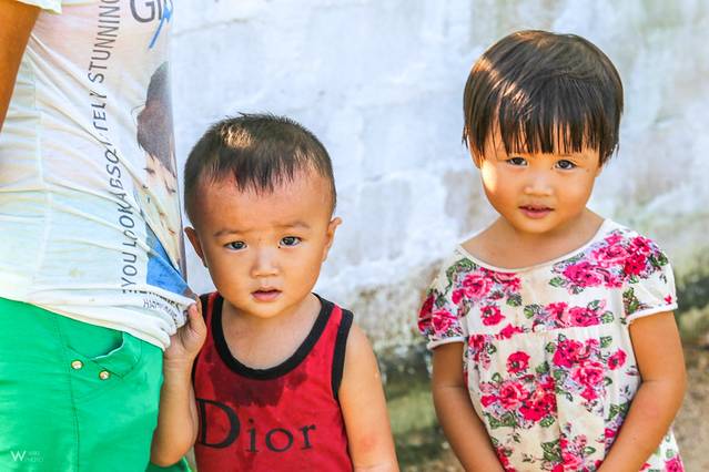 村里的娃看到有客人来了,出来看热闹。我说小弟,这是你的妹妹,还是你的妹子呀?