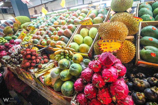 水果摊点就值得好好逛了。第一市场毕竟是农贸批发市场,这里的水果零售价是全三亚最低的。打包好快递回家也挺方便。
