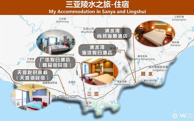 三亚之行我们住了两家民宿,一家在天涯镇(天涯此时精品客栈),面朝大海,坐拥红塘湾280度无敌海景,另一家在三亚市区的祥瑞路商品街(广佳假日酒店),临近三亚河与第一市场,是三亚市最有本地生活气息的区域之一。两家民宿的大床房价都只在160元左右,性价比爆棚。陵水之行两晚都住在清水湾度假区的瀚海银滩产权式酒店公寓群,选了两家酒店管理公司受业主托管的公寓套房(海洋假日酒店、肖邦海景酒店),都是准五星级酒店的配置,每晚300元左右而已,性价比也是爆棚。