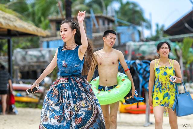 前来分界洲岛游玩的美女不少,充满热带风情的岛屿怎么搭配都好看。