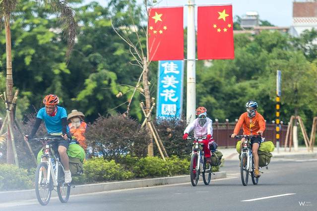 车行经过陵水县城,感觉县城规划没什么特别的地方,路上遇见了几波环岛骑行的旅友。