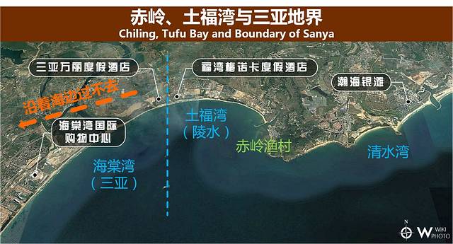 土福湾的另一头就是海棠湾,一排五星级和超五星级酒店的身影依稀可见。