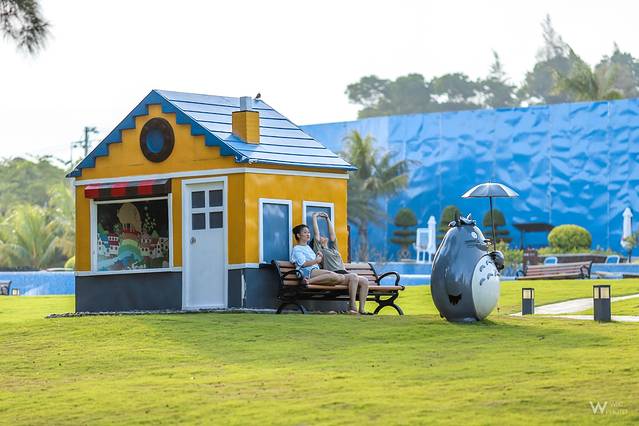 公园里有许多动漫元素的布景,游客稀少,看来是拍写真和婚纱摄影的理想选择。