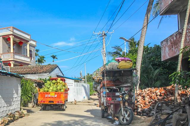 越行路越窄,心想这交通都还没做好准备呢,游客一多起来岂不堵死了。看到一车的新鲜椰子以及路边满地的椰子壳,椰子岛就到了。