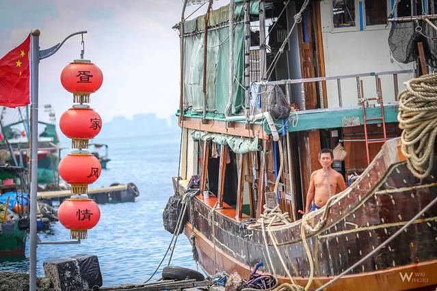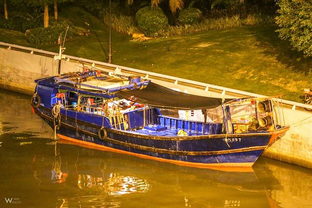 再继续开,开到游艇码头的入海口,发现有几艘渔船停靠在岸边。船上的渔民已经铺好了床,准备入睡了,也许明天一大早他们又将出海捕鱼。