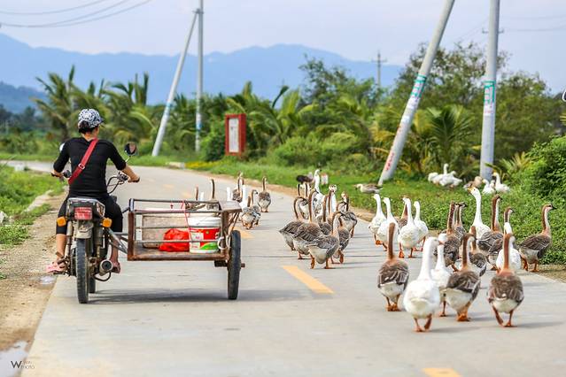 遇上一群鸭子,停车让行,顺便下来拍几张。