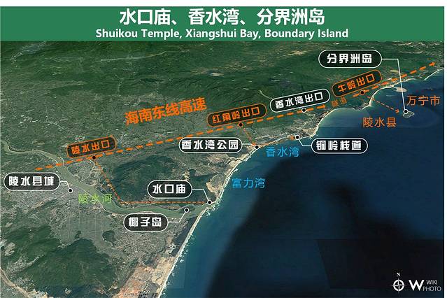 从陵水入口上东线高速,开往香水湾,有两个出口,一个叫“红角岭”,一个叫“香水湾”。