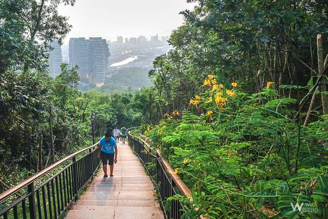 临春岭公园内建有不少亭台楼阁,其中以瞭望塔的风光最为宜人,于是我们就以瞭望塔为目标,开始登山咯。值得一提的是,山上没有便利店,甚至连卖矿泉水饮料的小贩都没有,一定要在山下准备好饮用水再上山。