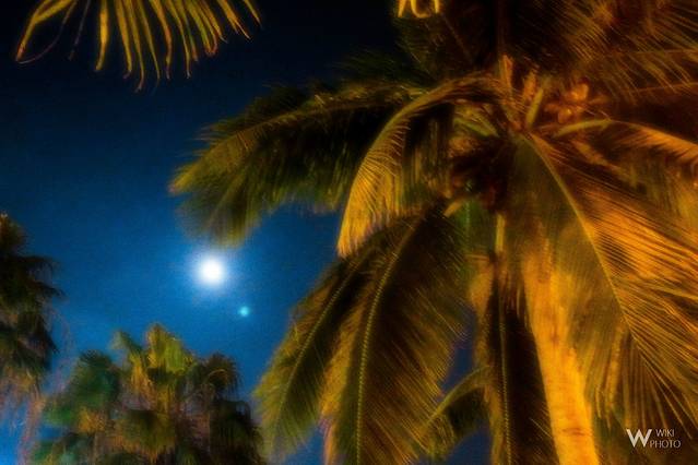 吃完后散步到三亚湾海边,月亮已经升到了高空。三亚湾海边人满为患,好热闹。