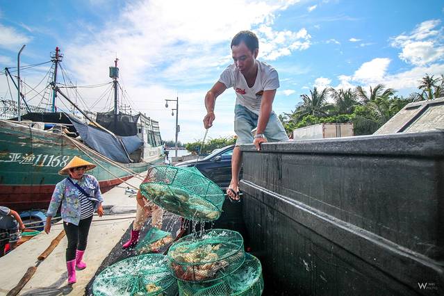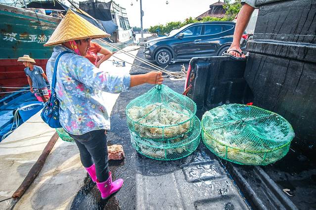 每一家海鲜大排挡都临海而建,这片海就是陵水的土福湾。