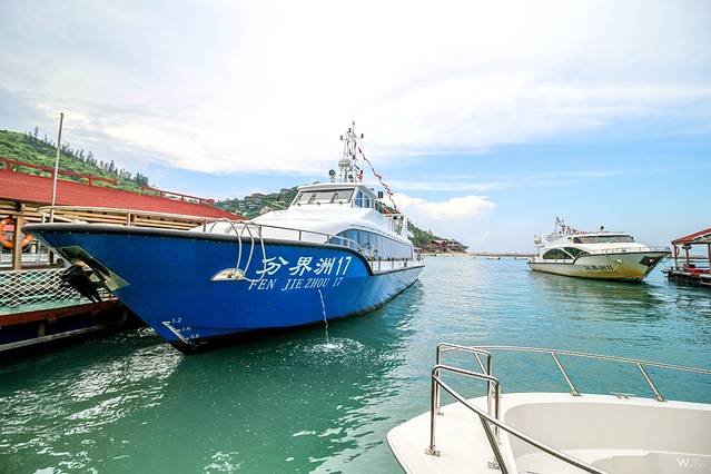 从牛岭出口下东线高速后,就是分界洲岛的码头和景区门口,买好门票后(含船票)就可以登岛啦,船行只有10分钟左右,成人票价165元,儿童82.5元。