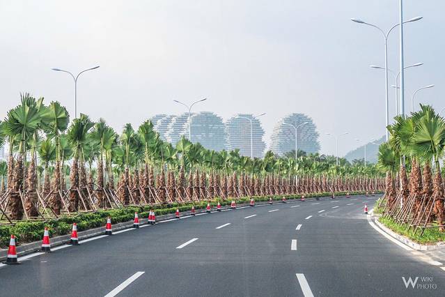 临春岭公园的入口位于三亚环城公路凤凰路上,有多条公交线路经过,交通较为方便。我们从海月广场转乘公交来到临春岭公园所在的“春光路口”站,还未看到临春岭公园的入口,就已被大树公馆体量庞大、造型奇特的建筑震撼到了。