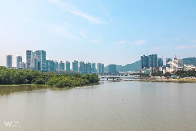 另外一边就是南湾入海口,海的对岸可以看见清水湾的酒店群,我们上午就是从那边自驾过来的。