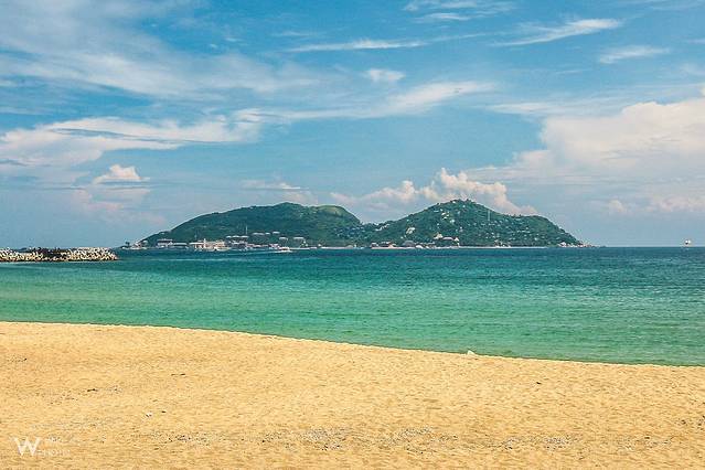 这片海滩的人真少,无论是沙滩还是海水都很干净。