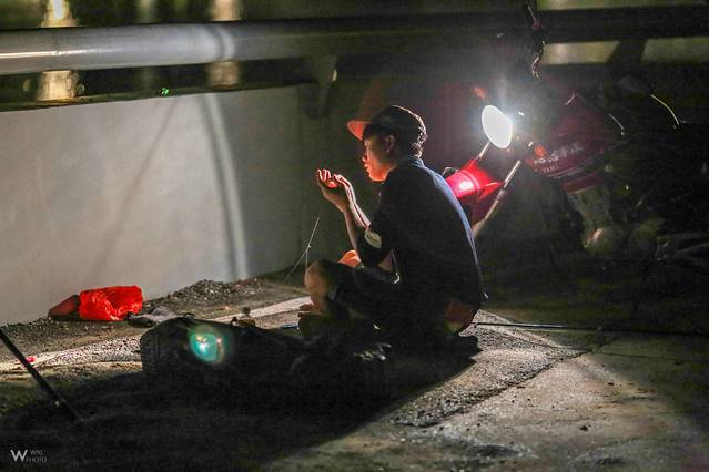 几个陵水小哥骑着摩托来到乌漆墨黑的海边钓鱼,真是有生活情趣。