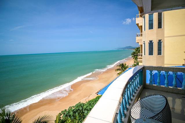 房间海景的确很棒,阳台外离海只有不到30米的距离,西侧可眺望天涯海角景区,东侧可眺望南山景区的南海观音。