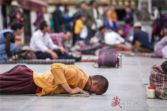 磕长头匍匐在山路,