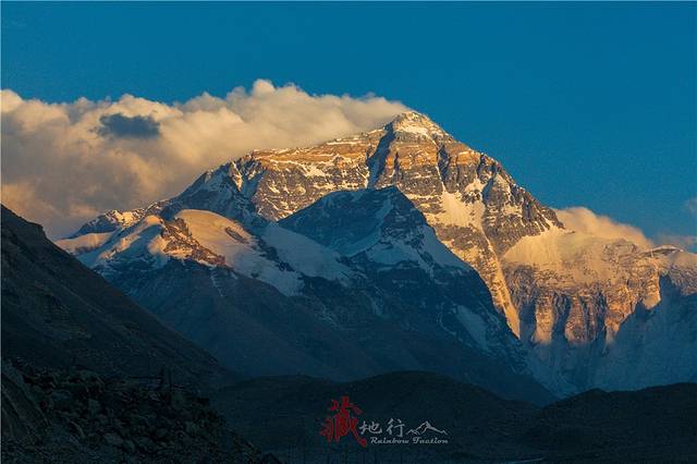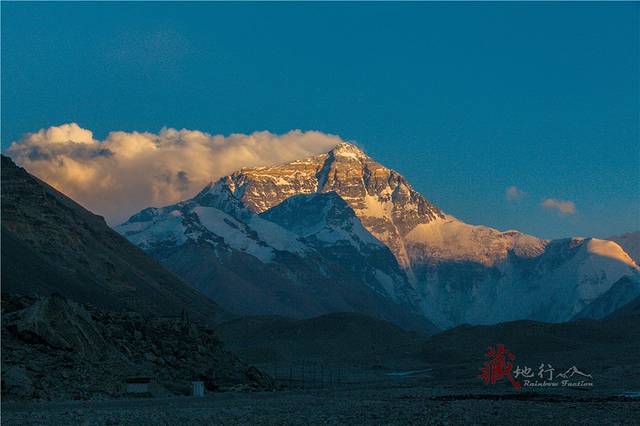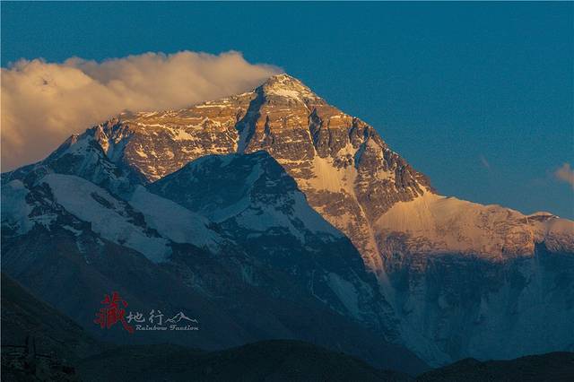 这样一个又一个平凡的日出日落,在它三千八百万年长度的生命中如同沧海一粟,而于我们这些平凡的人类,站在它——世界之巅的脚下,用双眼真真切切的目睹太阳的余晖从它身上抹去,犹如一条金色的丝带划过它圣洁的玉体,缓慢而留恋的坠落直到消失在天际,这样的景象能在我们生命中出现一次已是千载难逢的机遇……