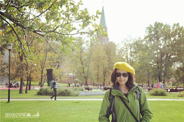 姜黄色的贝雷帽配上莫斯科红场的秋色,却让冲锋衣毁了气氛~