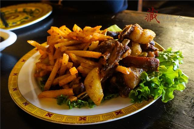 找到平措青旅的新店(就在老店的斜对面),这家青旅太火,排大队办理入住,好不容易进了房间,观景房很大,窗户外面就是闪闪发光的布达拉宫。帮主怕我一躺下就起不来了,所以我们决定先去吃午饭再回房间休息,好在平措新店的五层就是著名的“老鱼饭局”餐厅。