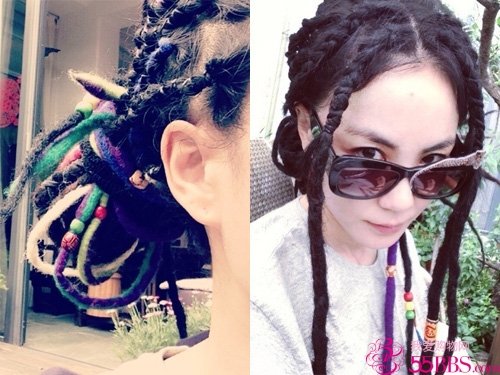 可惜我是短发,编完披着头发有些奇怪。不过我想要的就是王菲那种都扎起来一大束的感觉,正好这长度能满足我的要求。