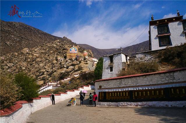 如果坐公交来哲蚌寺,下车后需要徒步爬山30-40分钟才能到达哲蚌寺大门口。去之前做了功课,可我们还是小看了这30分钟山路,把我和帮主爬惨了,最主要是这天气温回升,我们俩走的一身大汗,一边爬一边脱。。