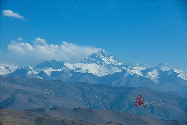 珠穆朗玛峰那么远又那么近,我可以看清它一条一条的不同颜色,看清渐渐融化的积雪后面的山体形状,甚至我都怀疑那上面是不是会有很小很小的彩色亮点,就是正在攀登珠峰挑战极限的登山勇士们呢?