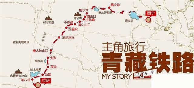找了两张比较清楚的青藏铁路线路景点图,能够很明确的看到我们列车行走的线路。遗憾的是我最期待的可可西里无人区是在夜里穿过,看不到藏羚羊宝宝不高兴……