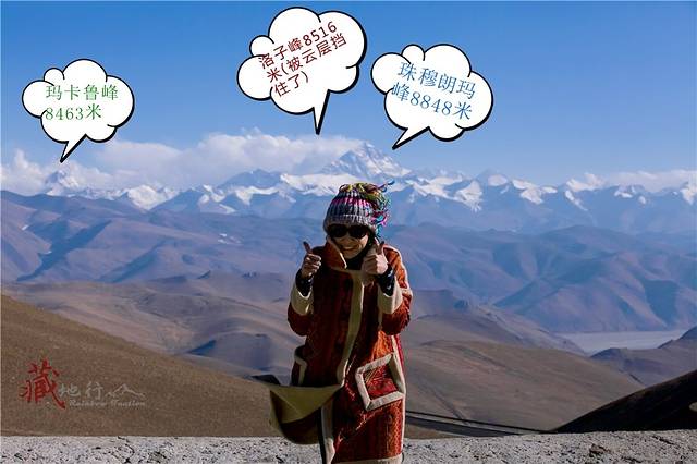 这张在行驶途中隔着车窗无意间拍摄的照片,竟然是我们所有照片中唯一一张把四座8000级雪峰全部拍进来的一张~~特意做了一个有标识的图片