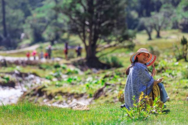下山的时候,偶遇一个带娃娃的妈妈,哇白裙,加红色围巾,在一个纯绿色的环境中太出彩了!!!