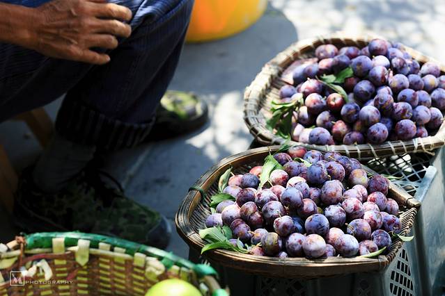 桃坪有很多当地居民挑着当地水果在卖,光李子都分了很多种