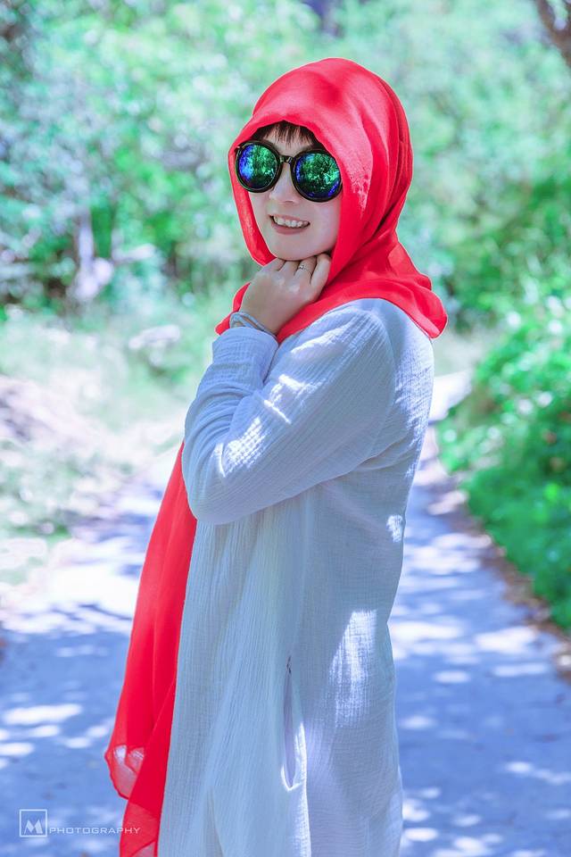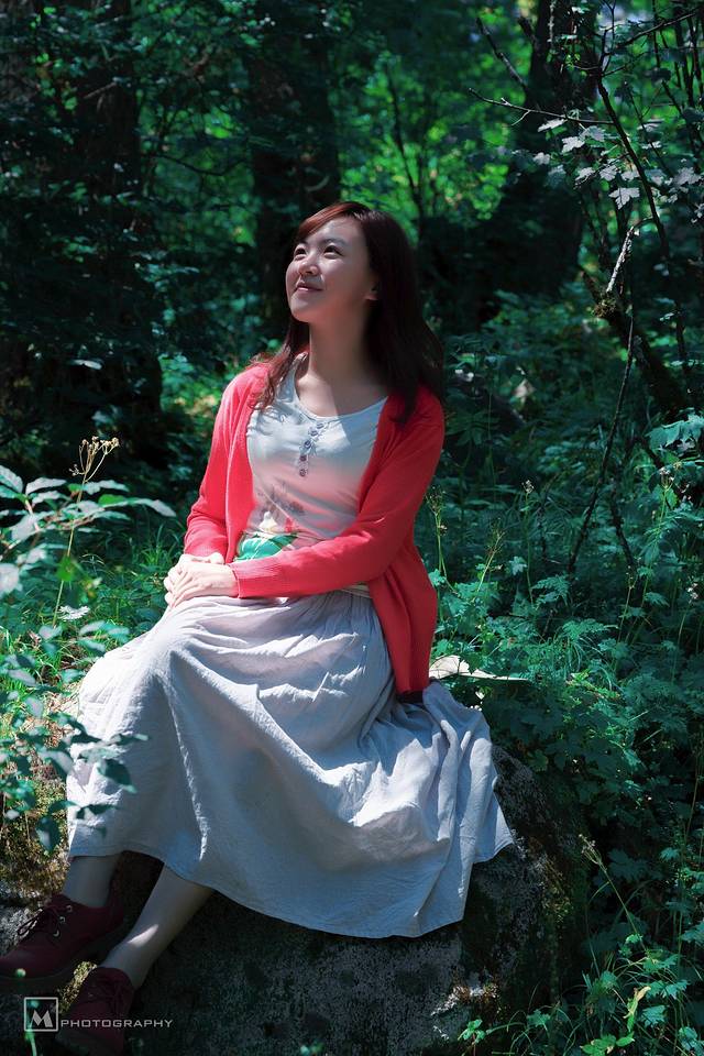 这就是模特的技巧了:在绿色的树林或者环境中,白色和红色简直绝配