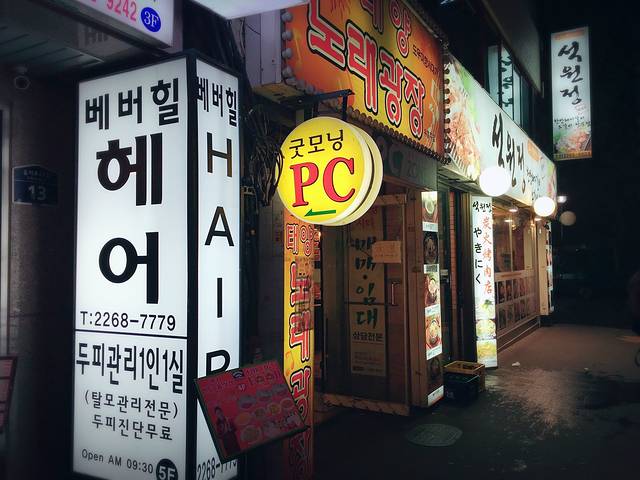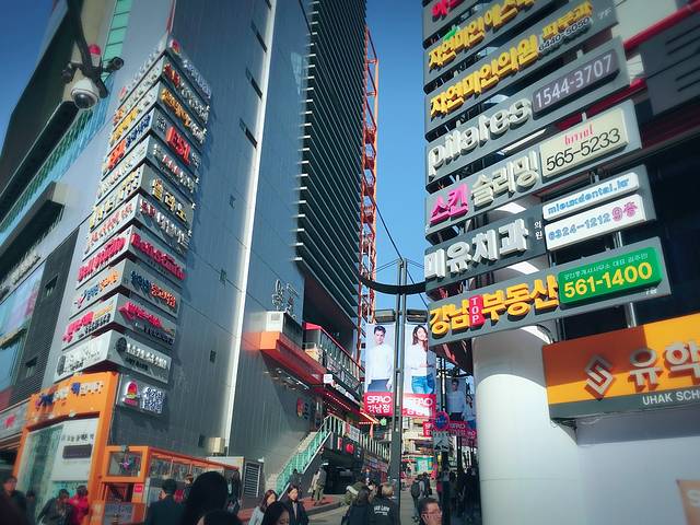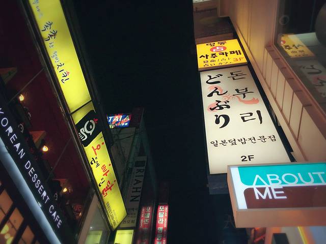 中文、韩文、英文、日文各种语言标注的牌子层次不齐、错落有致,形形色色的人流穿来穿去。走进去的一刹那,你便会融入其中。
