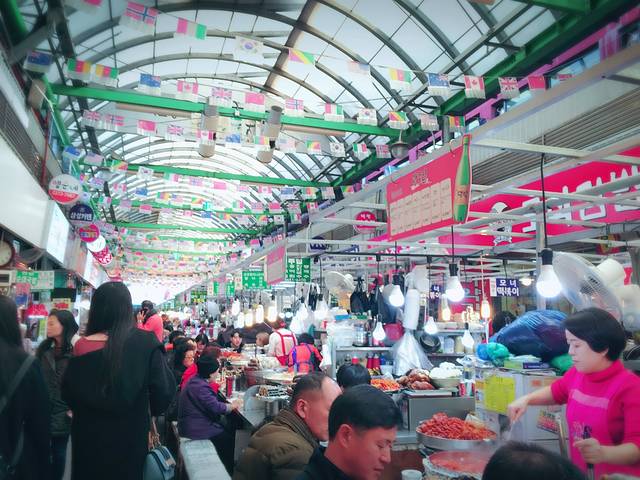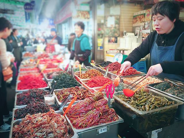 首尔一个非常有历史的广臧市场,有点像国内的集市,吃穿住行,各种当地特色在此聚集。在这里,韩国泡菜、酱蟹等等民俗小吃,纯正的味道。游客络绎不绝。在此体会一下还是不错的。