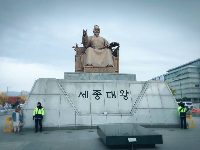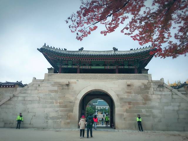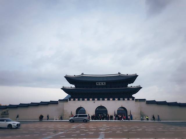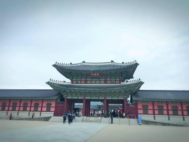 这是首尔古代皇宫的大门,地位相当于北京的天安门。前面是一个大广场,不过跟天安门广场比起来可就是小巫见大巫了。