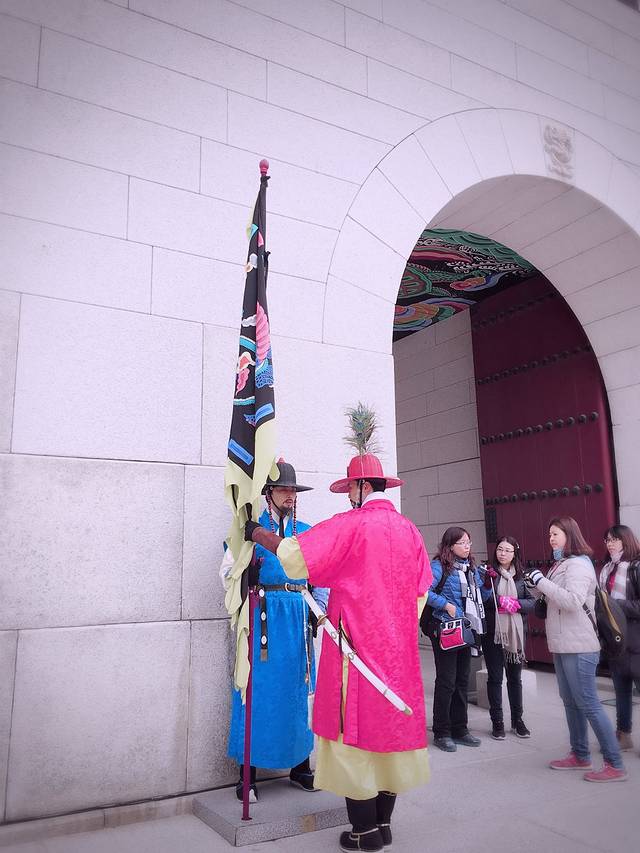 光化门前警卫统一穿着古代服装,每年会进行交接仪式。