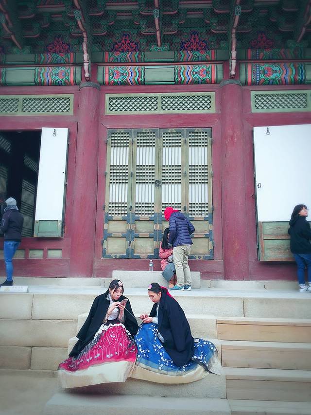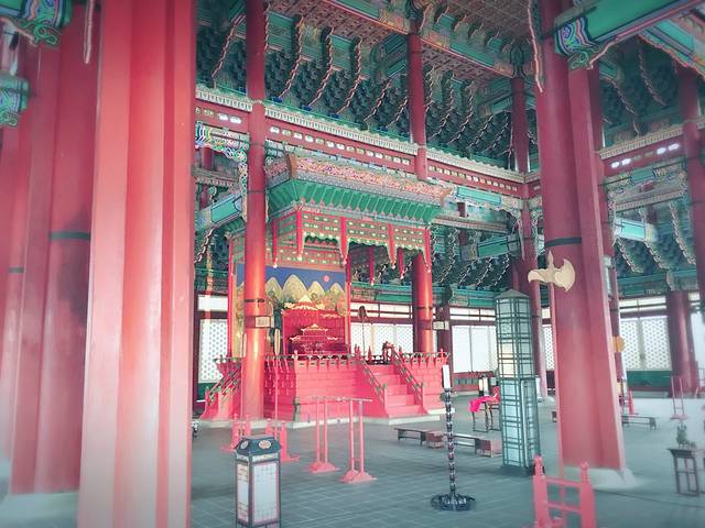 顺着光化门进去,就是景福宫。这里是古代皇帝居住和办公的场所。建筑风格和命名也都参照了故宫的形式,不过古代朝鲜是中国的附属国,其建制要比故宫小很多了。
