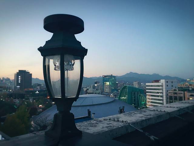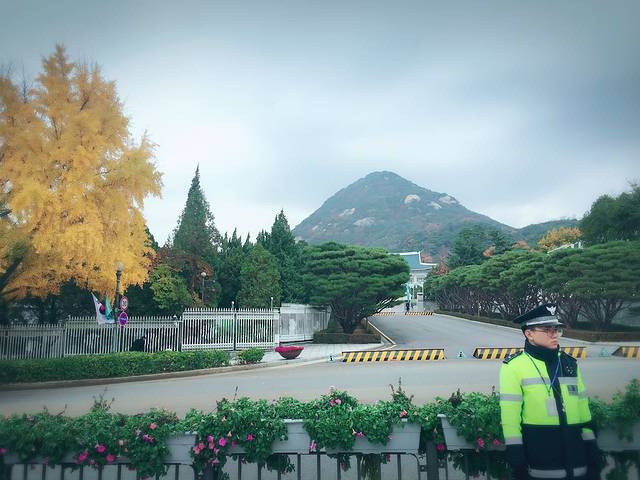 这里是韩国政府办公地,是政治中心。青瓦台坐落于半山腰,远远就可以看见。这里沾满了警卫和便衣。青瓦台每天都有参观开放时间,要提前预约,导游会带你进去参观。