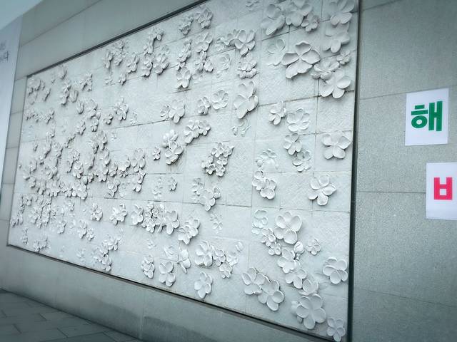 梨花女子大学是国际上非常出名的大学,学校里几乎全是女生,很多学生运动的发源地也是这里。雕刻着朵朵梨花的校门前,粘贴着各种宣传版面。