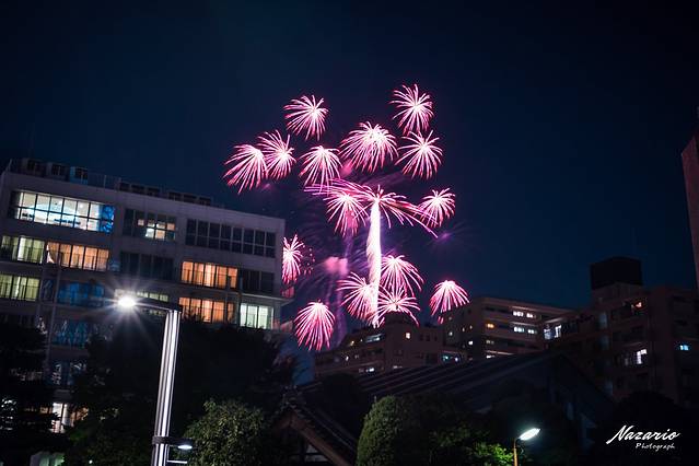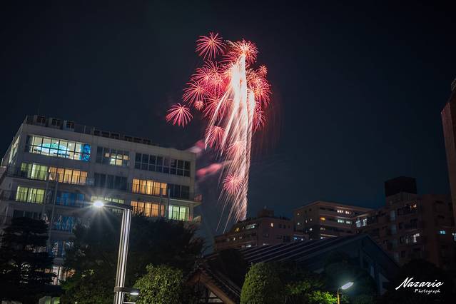 我们赶上了7月30日【第39回 隅田川花火大会】,花火大会靠近浅草寺,言問橋上流是第一会场,駒形橋下流是第二会场,基本7点开始燃放烟花持续时间1个半小时,总计发射2万法,小雨照常进行(暴风雨天气时延期到2016年7月31日)。坐地铁到浅草站步行5-15分钟就可达到两个会场附近。
