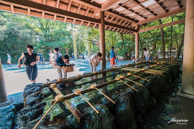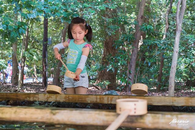 神社都是免费参观的,不过当天的人并不是很多,进门口有个清手清口池,看当地人应该都是有步骤和规矩完成洗手和漱口这些动作,对于小丫来说也只能妆模作样下了......