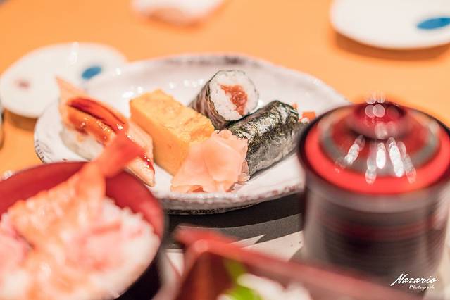 楼上有两层吃饭的美食天地,也没做美食攻略,拿起手机随便搜索了一个评价还行的日式料理店,点了两个套餐,生鱼片口感一般,小丫对生鱼片也不是特感兴趣,两个寿司、一个炖蛋就满足了!