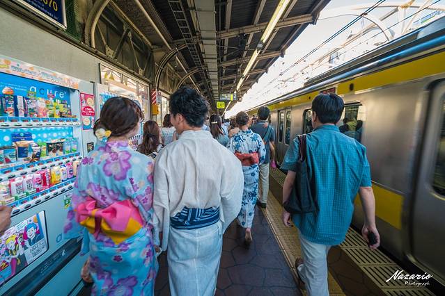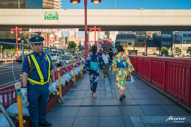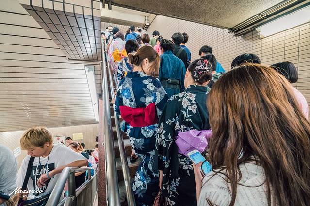 回程,目标【浅草】,在地铁上已经能感受到花火大会的气氛,很多日本的青年男女纷纷穿上浴衣,前往我们共同的目的地——隅田川!