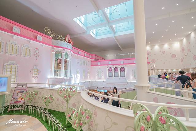 二楼为电玩游乐场。里面有新型的电玩以及跳舞机等游乐设施。三楼为乐园入口,这里可是全东京最大的凯蒂猫商品专卖店。店内有许多可爱的HELLOKITTY布偶还有她的一些玩伴,是HELLOKITTY爱好者不可错过的好地方。四楼有两间餐厅和凯蒂猫商品收集屋。至于彩虹广场,里头有梦幻剧场、精灵剧场、彩虹天使探险、发现剧场、凯蒂猫之家、梦幻时空飞船等游乐设施