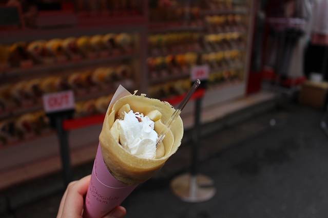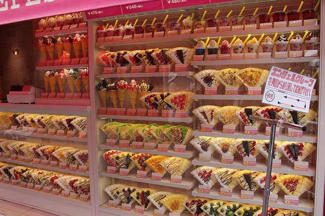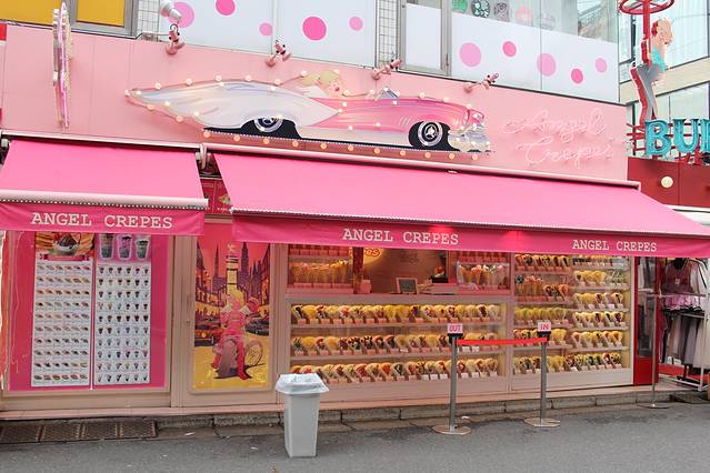 竹下通有很多可丽饼的店,找到了功课上写的这一家,Angel Crepes~~粉粉的深得我心