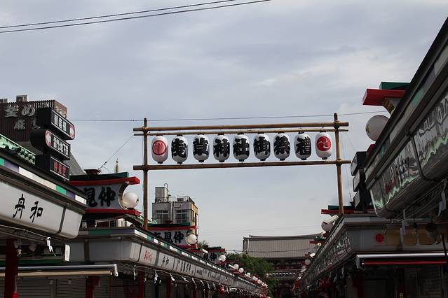 今天的天气比较妖孽,早上感觉是很晴朗多云的天气,但是后来一下子就阴了而且风超级大的,还好索性不下雨就很安慰啦!!!早上7点45分,我们就达到了浅草,为的就是一张没有人的雷门。